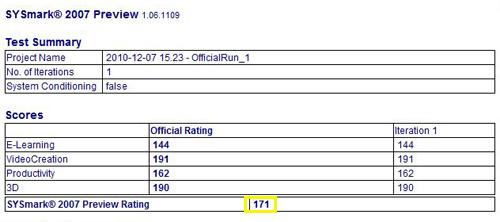 SYSMark2007整机性能测试分数