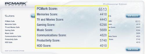 PCMark Vantage整机性能测试得分