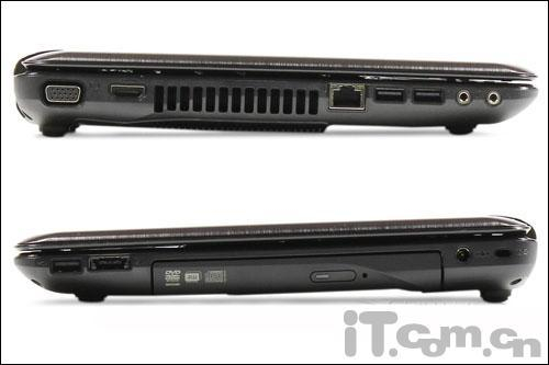 联想Y460P-ITH提供了以下机身接口:3个USB2.0接口、1个USB/Esata混合接口、VGA接口、HDMI接口、RJ-45接口、1组音频输入/输出口、ExpressCard插槽,多合一读卡器(SD/MMC/xD/MS/MS pro/SD Pro)。