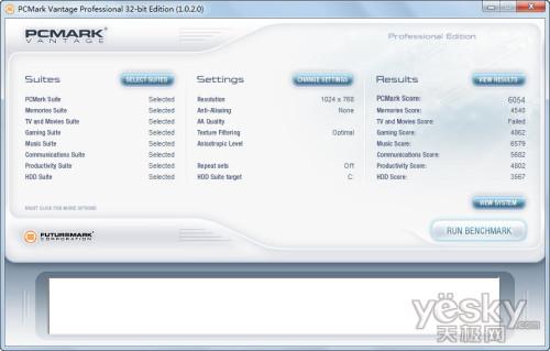 PCMark Vantage考察的是整机综合性能,测试总成绩为6054,其中内存、处理数据部分都表现非常出色,游戏部分表现最为出色,系统整体表现均衡。 PCMark Vantage主要依赖的是系统处理器和内存的性能,能够达到6000分以上成绩,说明它综合性能基本算是笔记本中的高端配置。