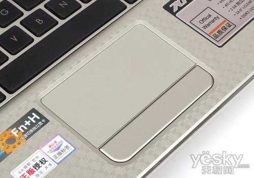 触摸板和掌托部分基本上没有特别不同,触摸板区域采用了磨砂的材质用料,手指在上面滑动也很舒服。按键采用了一体化设计,左右按键的弹性、力度、手感都相对的不错。