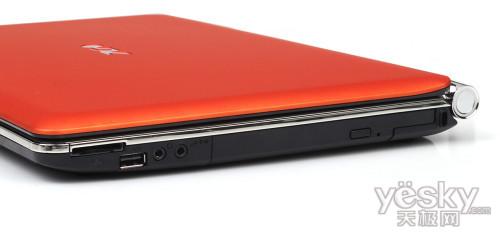右侧接口由于大部分被光驱占据,只有USB2.0接口和音频输入输出口