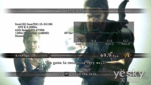 生化危机5虽然算不上一款新游戏,但PC版生化5对于系统的要求还是很高。我们采用了1280×720的分辨率,其他选项为默认关闭抗锯齿,在生化危机测试结果中,平局游戏帧数为66.9,完全达到了最佳流畅度的画面。