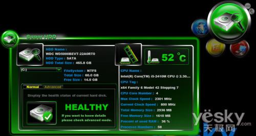 另外海尔还配备了一款电源控制软件,能够实现三种电源模式切换,包括:Super OSD模式、Super Power模式、Super HDD模式。能够通过不同种类应用切换到不同模式,能够实现节电功用。