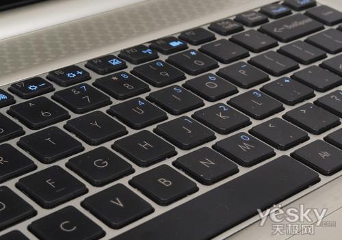 如果“巧克力”键盘已经成为笔记本标配大众设计,这种键盘我们之前已经做过不少次介绍,它最大优点是外观漂亮、时尚,其次键盘更易清理。不过也有一点小遗憾就是键帽的尺寸相对缩小了一些,一定程度影响了打字的手感。