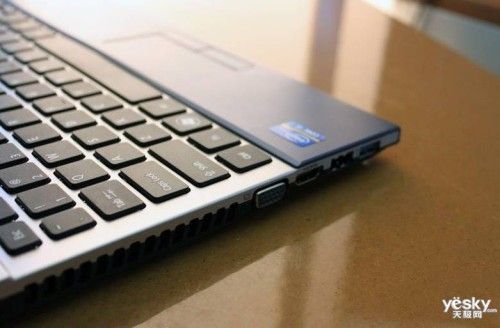 在接口配置方面,这款机器机身右侧拥有一对音频接口、一个USB 2.0接口以及电源接口。机身左侧则拥有网线接口、VGA接口、HDMI接口、一个USB 2.0接口和一个USB3.0接口。机身前端设有电池电量侦测灯及多合一读卡器。该机型平均厚度在26-29毫米之间,重量仅为1.89千克。