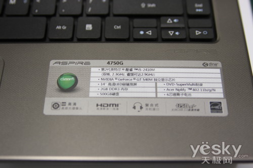 外观方面,宏碁4750G-2412G50Mnkk沿用了AS4741G模型,外观变化不大,只有一些细节处调整,如扬音器,接口布局等位置都一些微调。顶盖仍旧是采用素雅独特的纯色凹刻纹理设计,键盘也依旧是浮萍式的设计。显示方面,该机提供了14寸LED背光屏幕,分辨率为1366×768,效果中规中矩。