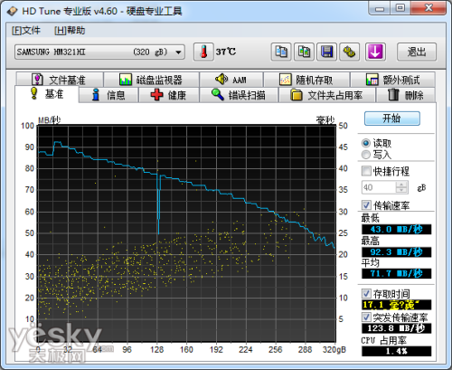受成本所限,神舟A420P采用的是一块三星5400转的320GB硬盘。对于大多数笔记本用户来说,安装游戏程序、下载影视、储存照片320GB完全够用,平均71.7MB/秒的读取速度也能满足普通用户的需要。如果用户有升级需要,也可以方便的自行升级。