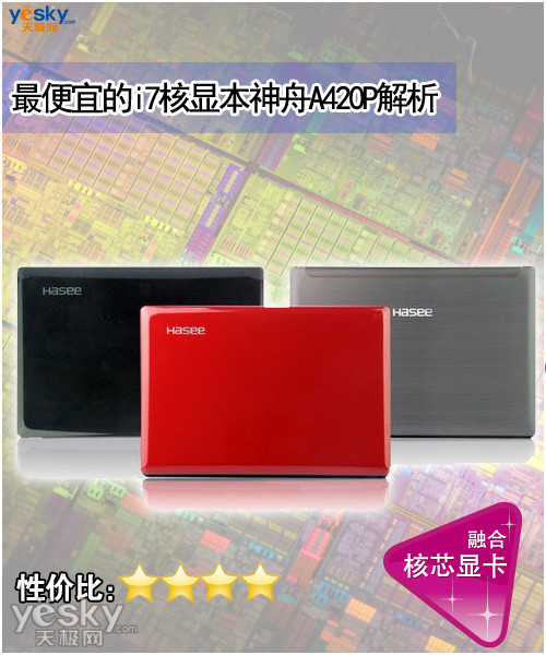 今年Intel推出的Sandy Bridge平台第二代酷睿处理器由于内置其中的核芯显卡能提供入门级独立显卡的性能表现,对笔记本产业带来了巨大的变革。就在各大笔记本厂商忙于升级或发布SNB新品的时候,神舟高调地推出了多款没有搭载独立显卡的核芯显卡笔记本,其中神舟A420P凭借着Intel酷睿i7 2630QM处理器配置以及3999的超低上市价,摘下“最便宜的Intel第二代酷睿i7笔记本”桂冠。