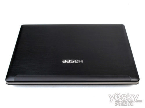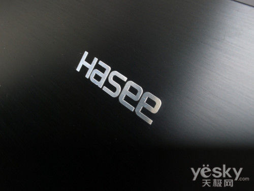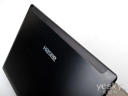 A420P的顶盖采用铝镁合金的材质设计,表面分布有十分细腻的横向金属拉丝,有着与镜面相当的光滑度但却能极大的提高顶盖的耐磨性,同时更难留下指纹。顶盖的上方设计了神舟HASEE的金属LOGO,在黑色的顶盖上非常醒目。