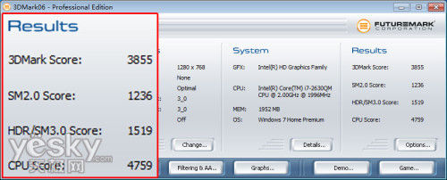 核芯显卡Intel Graphic HD 3000支持DX10、SM4.0、OpenGL2.0、以及全高清Full HD MPEG2/H.264/VC-1格式解码,可提供高效的图形处理性能,对笔记本产业带来了巨大变革。在3DMark 06和3DMark Vantage的测试中,神舟A420P的得分分别为3855(3DMark 06)和8745(3DMark Vantage),其中GPU的得分与入门级独立显卡旗鼓相当,得益于Intel酷睿i7-2630QM出色的处理器表现,神舟A420P无疑在性能上将同价位笔记本甩在了身后。