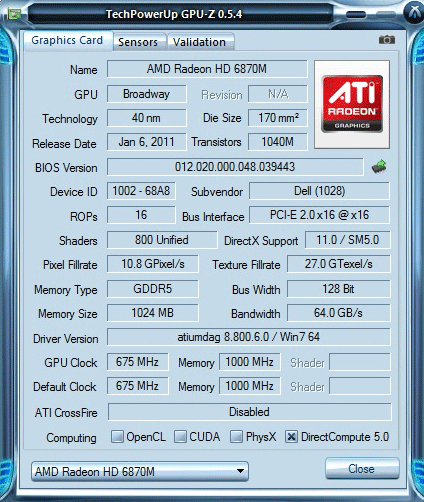 戴尔Alienware M17x配备了强悍的AMD Readon HD6870M显卡,具备1GB DDR5显存,800个流处理器的设计,绝对称得上高端显卡,性能在NVIDIA GeForce GT560M之上。