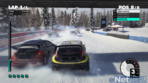 《尘埃3》自带的测试程序,会进行一场模拟比赛,在1920*1080分辨率下,游戏中画面非常清晰,结合Aspire 8951G的18英寸大屏,有种自己驾车在赛道中比赛的感觉。