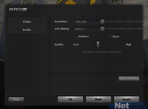 游戏参数设置方面,将分辨率设置为显示屏的最佳分辨率1920*1080,开启DX11,画面质量等级选择-“HIGH”,其实“HIGH”是该款游戏的最低等级了。其他设置选项全部保留游戏的默认设置。