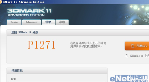 3DMARK 11 Performance模式测试成绩