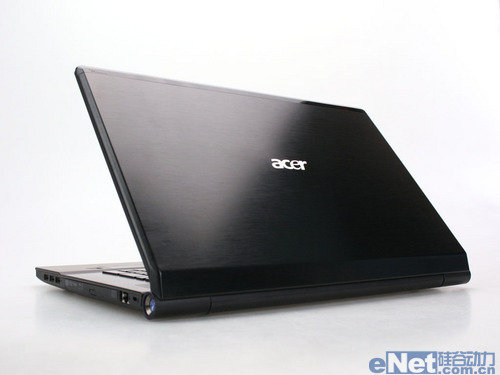 作为一款18英寸顶级旗舰产品,外观方面的设计同样很重要。宏碁Aspire 8951G外形设计非常简约,黑色金属拉丝上盖,棱角分明,带有金属材质特有的霸气感。顶盖中间的“acer”商标,带有金属细斜纹,质感强烈。