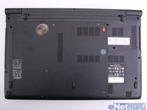 宏碁Aspire 8951G的底壳设计的中规中矩,大盖板的设计方便对硬件的升级。底壳多出散热孔的设计可以保证充分的散热性能。电池设计为不可拆卸式的,两端有螺丝固定,要拿下电池需要卸掉螺丝才能拿下。