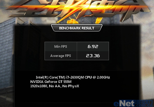 在全高清分辨率、中等画质下,宏碁Aspire 8951G的平均帧数达到了23帧,要想流畅运行《全球使命》游戏只能降低画面分辨率,以画质换效果了。