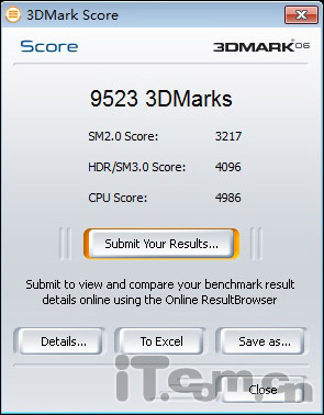 另外,在3D Mark06的测试结果中,9523的成绩也是非常的出色,虽然没有过万,但是也绝对是一款值得推荐的笔记本。