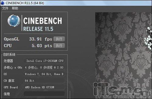 众所周知,无论是英特尔老平台或是全新的SNB平台下,i7处理器绝对是高性能的象征(低电压处理器的性能除外),下面我们就来看一下这款华硕A43SA采用的这颗i7-2630QM的四核处理器的性能所在。在CINEBENCH R10的测试中,单核心4592CB,多核心16771CB的成绩,处理器的性能是非常强悍的,并且与前一代的产品相比,可谓也提升了一个档次。另外在Cinebench R11.5的测试中,fps和pts的表现也是可圈可点的了。(fps:帧数;pts:点数)
