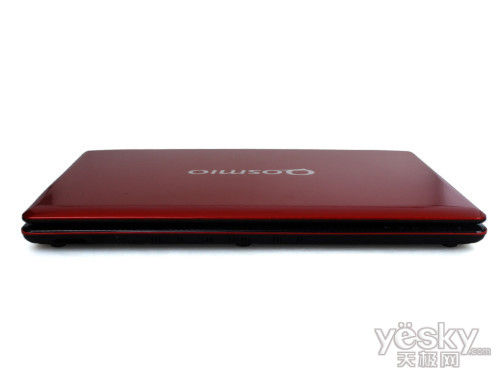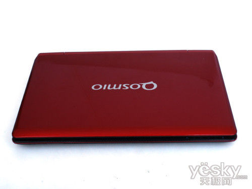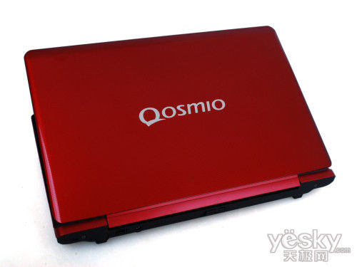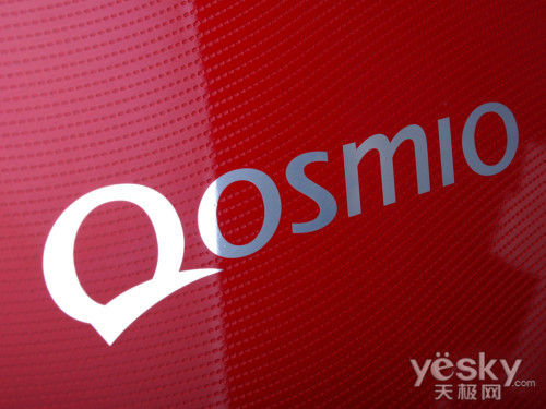 东芝Qosmio F750的顶盖沿用了Qosmio系列笔记本经典的红色“虎鲨纹设计”顶盖,这样的设计不仅看起来很具有时尚科技的气息,而且手感颇佳,不易留下指纹。在东芝Qosmio F750顶盖中央设计了代表东芝高端影音娱乐旗舰机型的Qosmio的标志,十分简洁。