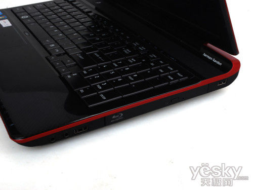 在东芝Qosmio F750的机身右侧,则由前往后分别设计了音频输入输出插孔、1个USB 2.0接口、蓝光DVD刻录光驱和1个USB 2.0接口。之所以配备高端的蓝光DVD刻录光驱,是因为目前市售的3D电影片源基本都是蓝光DVD格式,为了能观看3D电影,因此东芝Qosmio F750搭载了蓝光DVD刻录光驱。当然,考虑到国内的实际情况,相信更多消费者更倾向于下载3D电影的DVD镜像,使用虚拟光驱播放。