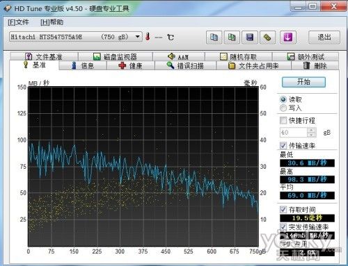 东芝Qosmio F750的硬盘平均读取速度69MB/秒