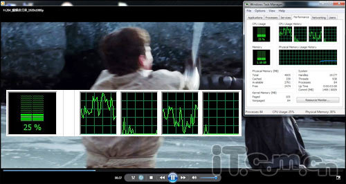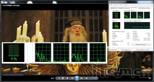 在测试之余小编还播放了段1080P编码的高清电影来测试一下这款华硕N45SF的多媒体播放性能,在播放过程中小编发现,在实际播放过程中,效果逼真,画面细腻、流畅,无任何卡屏现象。在未开启硬解码的情况下,我们看到,CPU占用还是很出色的,并且在搭配上极致的影音,因此这款华硕N45SF的多媒体播放效果还真是令人非常的期待呀。