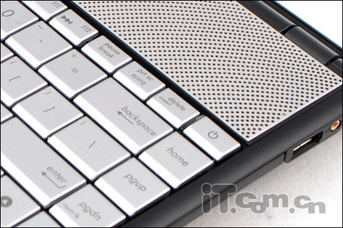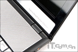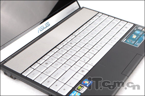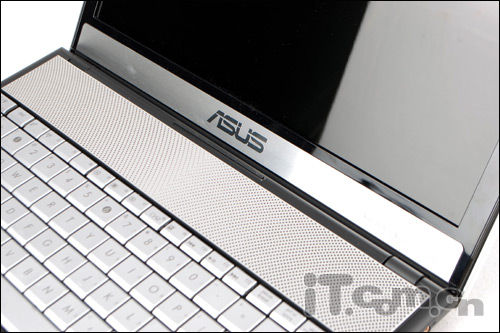 在C面键盘上方是这款机器的扬声器所在位置,贯穿在C面顶端的金属扬声器,让整款华硕N45SF看上去档次非凡,并且采用Bang & Olufsen ICEpower认证扬声器,扬声声效果出众,另外华硕N45SF还应用了华硕与Bang & OlufsenICEpower联合开发的SonicMaster技术,再加上外置的“低音炮”,令整机扬声效果简直就是无懈可击。
