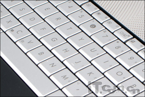 华硕N45SF的键盘采用的是银色的工程塑料材质,它与键盘上方的银色长行的扬声器达到了一个很好的融合,整机看上去非常的有档次,并且每个按键都经过了磨砂处理,手感不错。