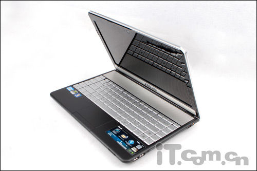 另外,我们看到这款华硕N45SF在周身加入了一圈抛光处理的金属包边,在华丽丽的感觉外,又让我们感受到一丝丝的稳重,可谓是刚柔并济啊。
