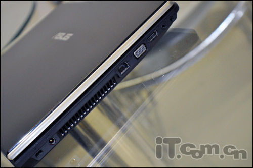 华硕N45SF的机身左侧接口分别是:安全锁孔、电源适配器接口、散热格栅、RJ45网络接口、VGA接口、HDMI接口以及音频输入输出接口。