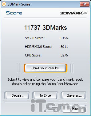 在3D Mark06的测试结果中,我们看到已然已经过万了,11737分得成绩,是非常出色的。