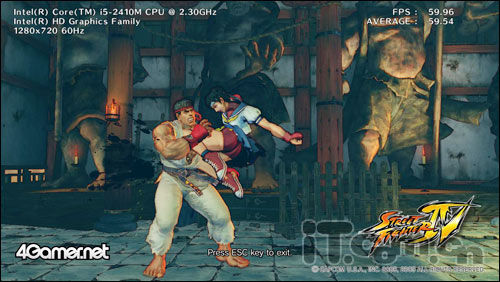注:由于现实的问题,在《街霸4》的测试中,一直显示的英特尔的核芯显卡,但是其实内部是NVIDIA Geforce GT 555M独立显卡在运行。
