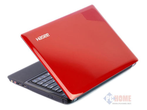 这款A420P采用了中国红配色设计,外观颇为拉风,顶盖的拉丝工艺设计更显时尚前卫的设计元素。内饰部分的设计相对稳重,采用了全黑的设计,并且加入了巧克力键盘的设计。屏幕方面,这款本本搭配的是14英寸LED背光显示屏,分辨率为1366×768。