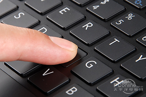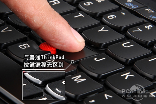 还有一点不得不提的就是经典的小红帽了,为了LCD不被向下的压力损坏,ThinkPad X1的小红点高度减低了0.4mm,其周围采用凹形设计的G、H、B键均向外移动,但并不影响点指杆和键盘的操作。