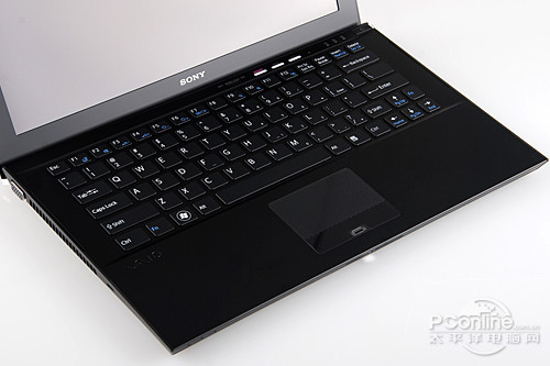 再看索尼Z2的键盘表现就没有太多可圈可点之处了,Z2的C面是一体成型ABS工程塑料板,内嵌流行的巧克力背光键盘。但是为了留出宽大舒适的腕托部分,索尼Z2将键盘面积缩小了,因此键帽的尺寸也随之缩小,键程长度也不得不收缩,这必然影星用户打字的舒适度。此外由于键帽的回馈力很小,长时间敲击索尼Z2的键盘难免会另手指产生酸累感。