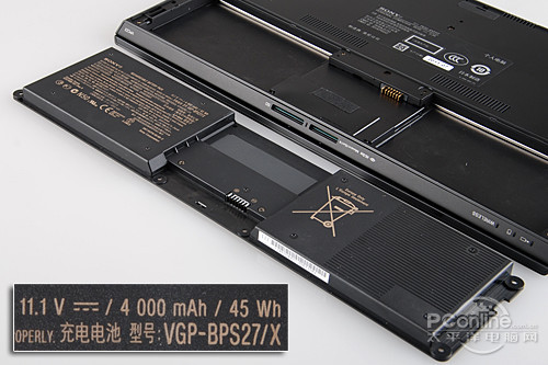 索尼VPCZ219GC使用了可拆卸的锂离子聚合物电池,该电池容量为45Wh,用Mobilemark2007测试得出的使用时间为258分钟(约4.3小时)。