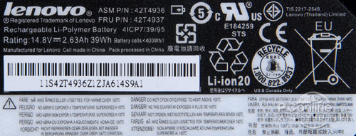 ThinkPad X1内置39Wh锂离子聚合物电池