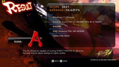 《街头霸王4》Benchmark游戏测试截图:核显(左)独显(右)