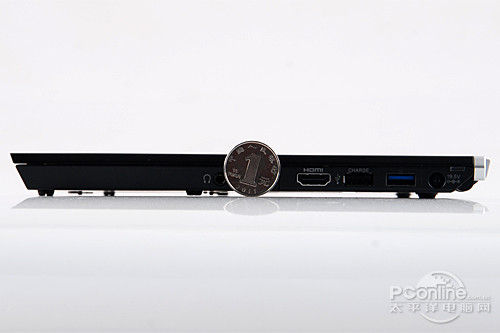 对于索尼Z2来说,极致轻薄应该是其最大的特点,在搭载标准电压i7处理器的情况下,索尼Z2的机身厚度做竟然做到到比一元硬币的直径还小,这应该是业界第一(当然机身强度上有所欠缺)。重量方面也同样令我们惊奇,在配备电池的情况下,索尼Z2的机身重量仅为1.159公斤,若是去掉电池,其机身重量与一代iPad不相上下。由此可见,在轻薄方面,索尼Z2的确是绝无仅有。
