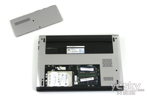 底部面板上的一个螺丝卸下,并推向背面的面板,用户就可以看到RAM和硬盘驱动器。这在理论上听起来很容易,但实际操作起来花了我们编辑很大的功夫,拆解该面板(即使它有帮助其去除的微小弹簧),我们不得不用信用卡沿面板的缝隙去用力的撬开,因此我们也担心会因此损坏笔记本电脑。鉴于拆解的难度,我们建议用户直接购买这款笔记本的高配版,而不是购买低配版以后选择自行升级。