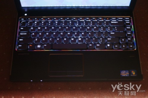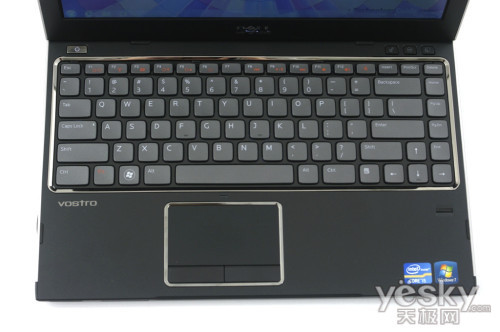 戴尔Vostro V131采用了全尺寸的键盘,并且带有蓝色背光。按键平面和边角圆润,手感顺滑柔软,为用户提供了一个舒适的打字体验。