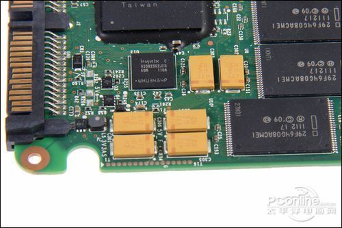 Intel 320系列固态硬盘在缓存的附近增加了6颗钽电容,用于做掉电保护。之前传出25nm闪存不稳定的消息,Intel增加掉电保护提高了固态硬盘的稳定性,大大降低了故障发生的。