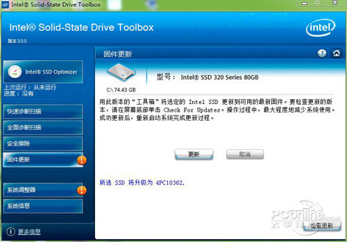 新版的Intel SSD Toolbox 3.0工具箱最诱人的莫过于可以在Windows系统下直接刷固件了,操作过程中,将会最大程度的减少系统使用,成功更新后,只需重启系统即可完成更新工作。凭借英特尔的雄厚实力,相信更为成熟的固件会更大程度的提升SSD的性能与稳定性。