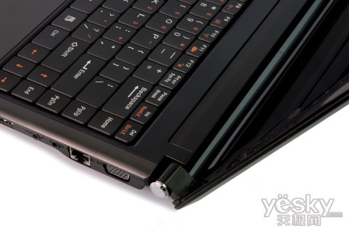 联想IdeaPad Y570NT-ISE(A)笔记本与之前的小Y很相似,但是它的顶盖已经换成了金属材质,黑色的表面下错落有致地“隐藏”着点状暗纹,显得很有质感。没有了镀铬的转轴,lenovo logo更加突出;橙色的腰线已经成为了小Y标志,将机身硬朗的线条很好地勾勒出来。轻启屏幕,15.6英寸的液晶屏十分宽大,支持最佳1366×768分辨率;这款机型的键盘部分也采用了流行的巧克力式,每个按键表面都略微向下凹陷,更加贴合手指;独立数字键盘也方便了经常需要数据的用户。掌托拥有拉丝质感,淡紫色也显得十分时尚。触控板的面积很大,手感也不错。