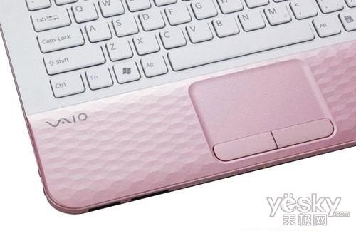 外观方面,索尼 EG26EC/P(粉)笔记本使用了粉色的立体质感纹理,远观仿佛波光粼粼的水面,璀璨晶莹;近看则是一个个排列整齐的小三角形叠加成的六边形,跟随光线变幻成不同的层叠效果;不仅机盖,掌托部分也采用同样立体质感设计,内外呼应。
