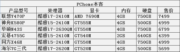“彪悍的小Y不再是传说”已经成为大家耳熟能详的一句广告语,联想Y470P采用英特尔Sandy Bridge新平台酷睿i7 2670QM处理器,4GB内存,750GB硬盘,AMD Radeon HD 7690M显卡性能强劲,售价7499元。