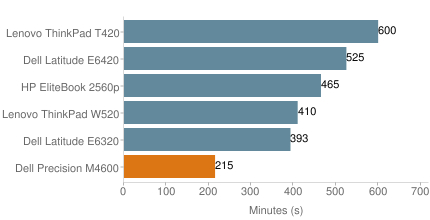 仅从时间上看,Precision M4600的续航能力似乎还说得过去,考虑高端规格和高功耗部件会严重缩短电池寿命,因此移动工作站通常都不能够提良好的电池续航时间。