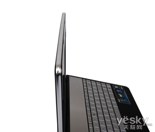 另外还有一点需要提醒的是,该机采用了一体化键盘设计,左侧的多媒体快捷键右侧的电源键与键盘融为一体,虽然这种排列方式节省了空间,但对于熟 悉一般键盘设计的人来说,需要适应一段时间。笔者深有体会,键盘最右上角为电源键,而一般的键盘则为delete删除键,当我们要用到这个键的时候很容易 下意识的去按这个电源键,万一一不小心真按下去把电脑关了,必然会令人非常懊恼,尤其是在输入过程中没有保存的情况下。